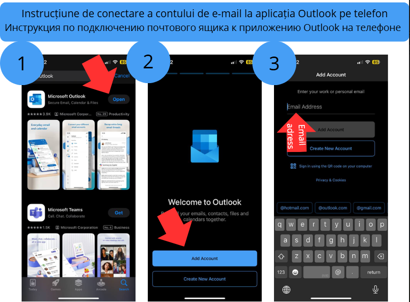 Instruction for connecting your email account to the Outlook app on your phone