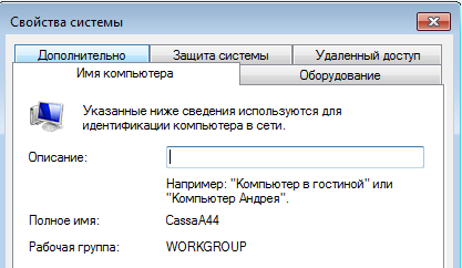 2.'Задаем в обязательном порядке' имя компьютера в зависимости от предназначения. Если компьютер будет использоваться в магазине, то имя компьютера должно содержать функцию и номер магазина, например: "CassaA12" , "AdmA12" , "TovA12" , "ZalA12" и т.д. Если компьютер находится в офисе, то в качестве имени компьютера задается фамилия сотрудника, например: "BALABOL".