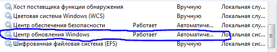 4.2 Мотаем список служб вниз и находим службу "Центр обновления Windows" и заходим в свойства.