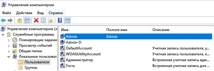 Так должна выглядеть учетная запись Admin